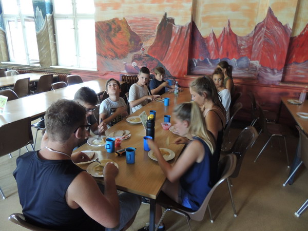 Nach so viel Brainpower wurde es dann auch schon bald Zeit für das Abendbrot. Leckere Kartoffelpuffer gab es und dazu durfte sich jeder am großen Buffet der Küche den Bauch voll schlagen.