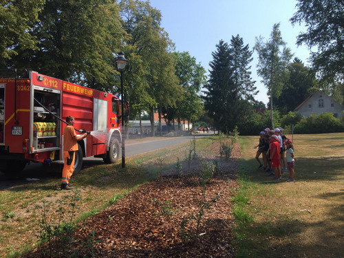Heute starteten wir nach dem leckeren Frühstück vom KJF Prieros in Richtung Edeka, schließlich füllen sich die Bestände nicht von allein auf. Morgens ist es sogar noch recht erträglich, wenn man sich so die Temperaturen anguckt. Zu unserem Glück kam gerade die örtliche Feuerwehr vorbei und wässerte die neu angepflanzten Sträucher. Naja… und zufällig standen wir dann natürlich in der Nähe der Sträucher :D Auf dem weg zurück gab es dann noch eine Kugel Eis von Bob spendiert ;)