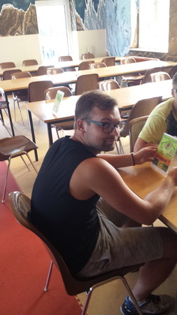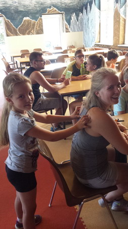 Noch im Essensaal wurden an die Gruppenleiter Mareike und Anna Massagen verteilt, als Dankeschön für die gute Betreuung. Rick und Bob sind leider leer ausgegangen :D