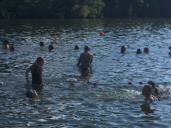Nach einiger Zeit AUF dem Wasser wurde es nach der Kanuprobe dann auch mal Zeit INS Wasser zu gehen. BADEN riefen alle Kinder als gefragt wurde was wir machen wollen.