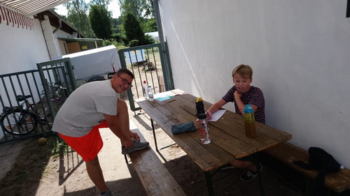 Nach dem Mittagessen, Nudeln mit Carbonara, packten alle schon die Koffer und ruhten sich etwas aus. Am Nachmittag wurde es dann in dieser Woche endlich mal sportlich und drei Teams traten beim Geländescrabble gegeneinander an. Zu Abkühlung ging es dann noch in den See.