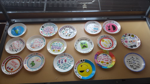 Da es am Nachmittag so heiß war gingen wir in einen Seminarraum und Teller bemalt, sodass alle Kinder ein schönes Andenken aus dem Ferienlager mit nach hause nehmen können.