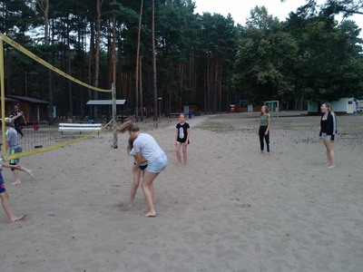 Anschließend fordern wir die Nachbargruppe zu einem Spiel Ball-Über-Schnur-Spiel heraus.