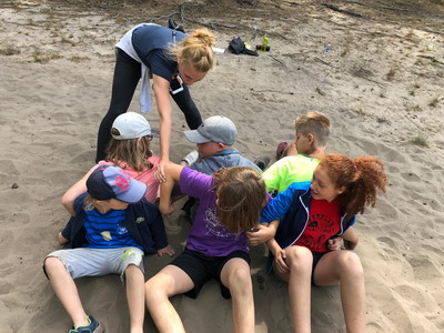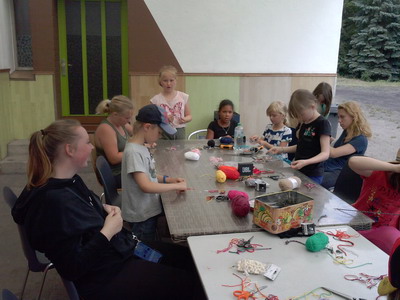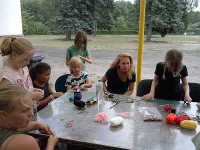 Wir haben sehr oft Armbänder gemacht, viele haben es um ihr Armgelenk und ihr Fußgelenk gemacht. Und es hat sehr viel Spaß gemacht!