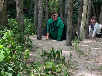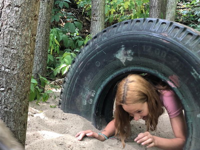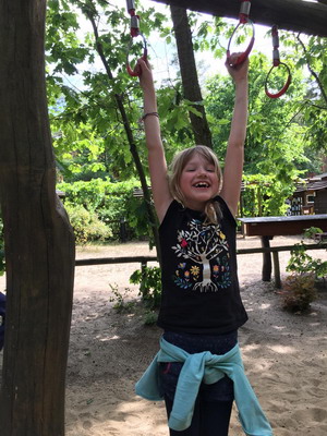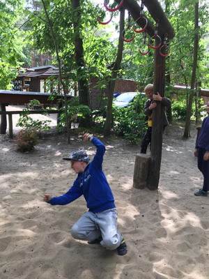 Lina: „Wir waren im Haus des Waldes, haben auf vier Beinen, wie ein Hirschkäfer ein Parcours gemacht. Und Flo war im Reifen festgesteckt!“