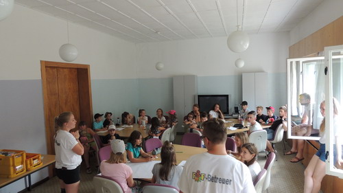 Der 4. Durchgang des F&F- Ferienlagers hat begonnen. Am späten Nachmittag trudelten langsam die ersten Kinder ein und begannen zunächst Namensschilder zu basteln, sodass schon mal die ersten Namen gelernt und neue Kontakte geknüpft werden konnten. Nach einem leckeren und stärkenden Abendbrot erkundeten die Gruppen das Objekt. Es wurden Kennlernspiele gespielt und das Zimmer eingerichtet. Die Größeren sprangen noch in die Fluten. Nach dem Duschen und der Feedbackrunde endet nun der erste Abend und die Kinder träumen von der aufregenden Zeit, die noch vor uns liegt.