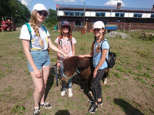 Heute war ein sehr erlebnisreicher Tag. Nachdem wir uns alle beim Frühstück gestärkt hatten, spielten wir zahlreiche Spiele am Vormittag, unter anderem den Gordischen Knoten oder Chinesische Mauer, bei denen wir uns noch besser kennen lernen konnten. Nach einer kurzen Mittagsverschnaufpause wanderten wir zum Zuchthof Dree Bröken, wo wir viele Pferde sahen und diese auch anfassen durften- nicht nur die Mädchen hatten ihren Spaß. Ganz zum Schluss trafen wir noch auf zwei Shetland Ponys, welche die Kinder auch führen und reiten durften. Am Abend sprangen wir alle gemeinsam noch mal in den See und freuen uns nun, nach diesem anstrengenden Tag, auf unser Bett. Die Großen spielen jetzt aber noch ein paar Runden Werwolf… Mal sehen wer es diesmal ist.