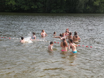Sarah in das Wasser gehen und jede Menge Spaß haben.