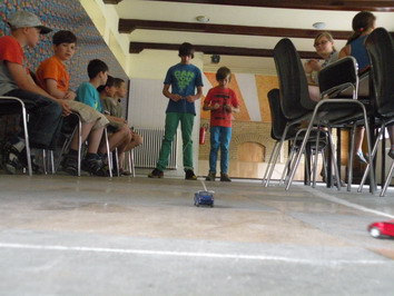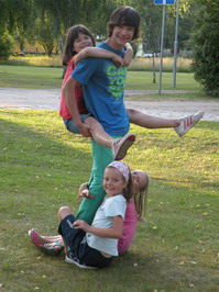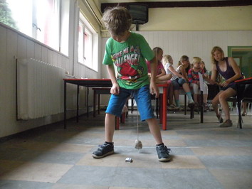 Wir mussten Disziplinen wie Dreibeinlauf, Flaschen halten, Stifte zielen,  Auto aufrollen ....