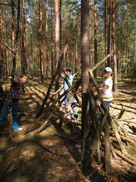 Spiele gespielt und sind auf dem Rück weg angehalten um Hütten zu bauen.