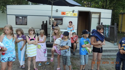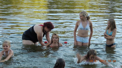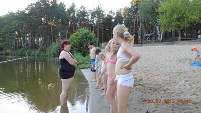 Vor dem Badespaß haben die Gruppenleiter noch die Belehrung zum Baden