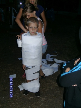 Danach ging es ein letztes Mal im See baden, gefolgt von einer kleinen Geisterparty, bei der sich die Kinder gegenseitig in Toilettenpapier einwickeln mussten.