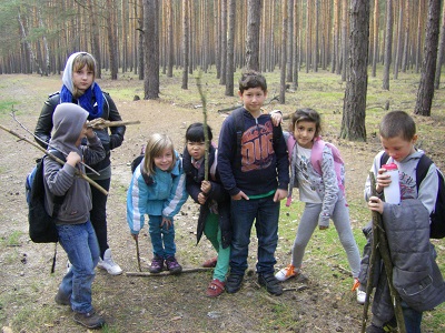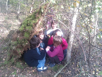 Am Nachmittag waren wir Wald "Hüttenbauen"