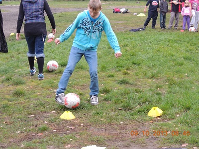 Aufwärmtraining, Geschicklichkeitsübungen und dann noch ein Fußballtournier