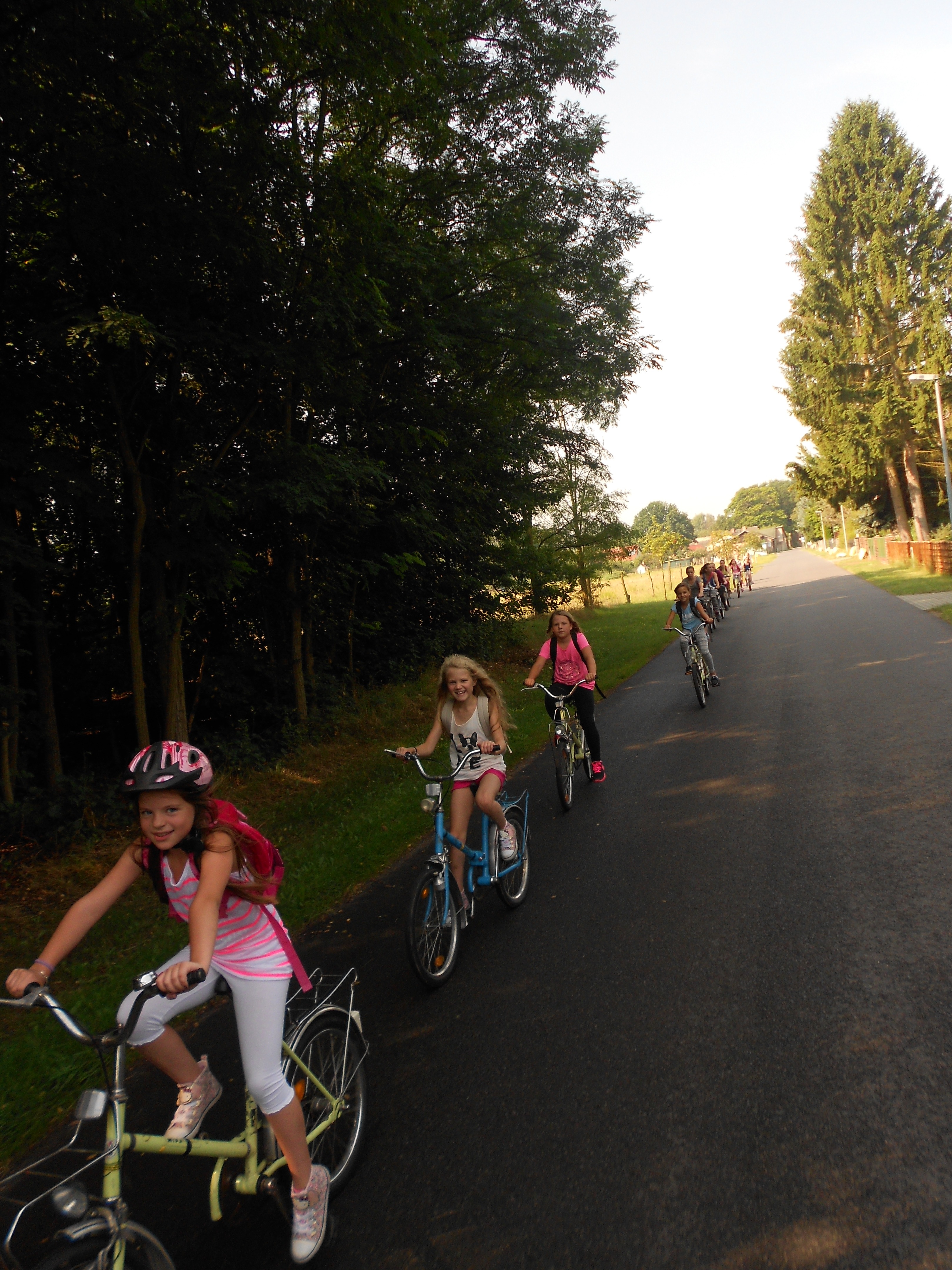 Am Vormittag haben die Mädels der Gruppe 2 eine etwa 10 km lange Fahrradtour, durch 5 Dörfer , gemacht . Wir haben viel entdeckt z.B. Rehe, andere Seen und eine Blindschleiche. Es waren viele schöne Momente dabei.