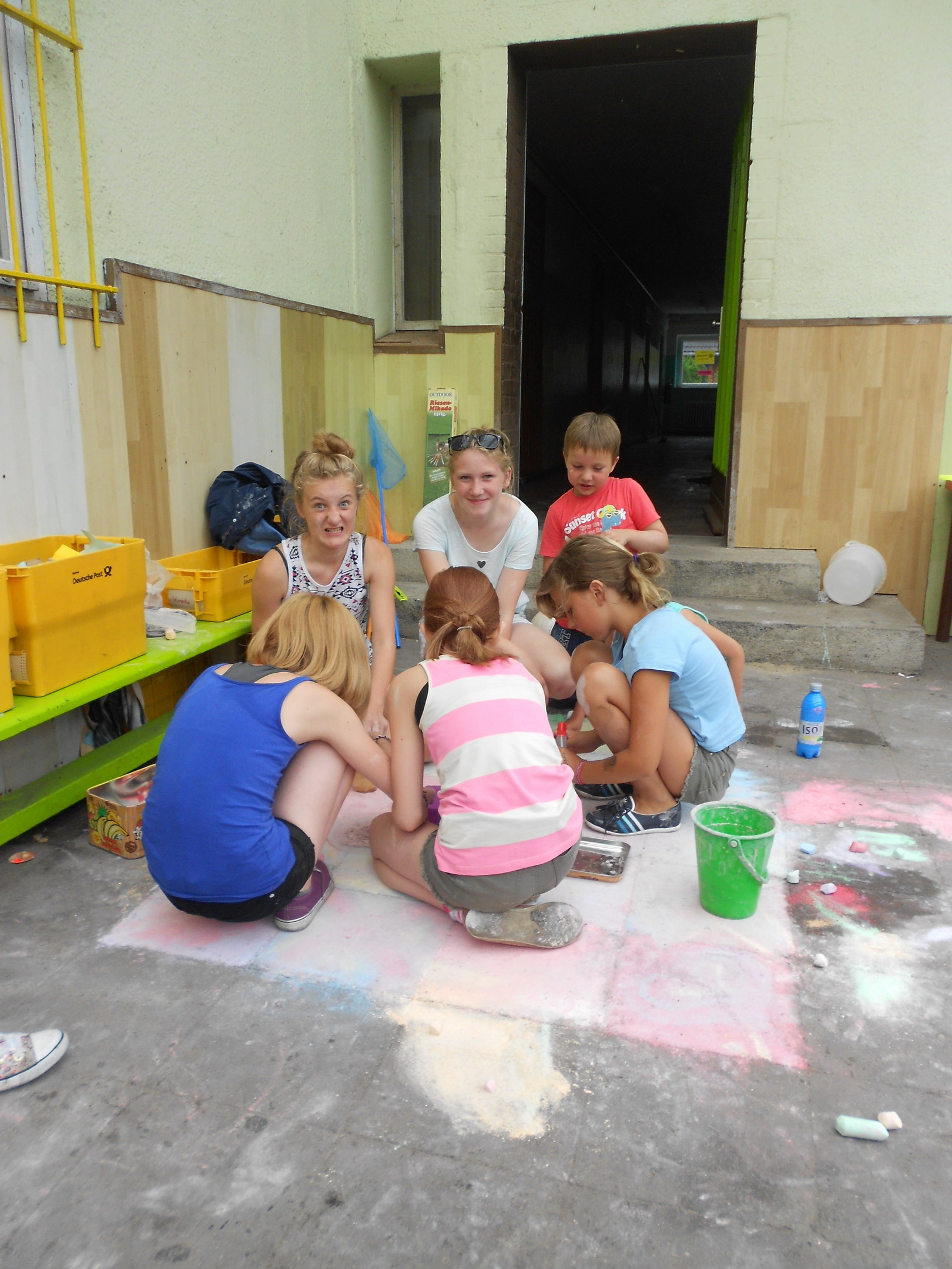 Am Nachmittag dürften wir entscheiden was wir machen wollen. Ein Teil von uns verschönerte die Terrasse und ein anderer Teil machte verschiedene Ballspiele oder gingen angeln.