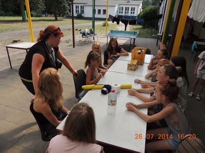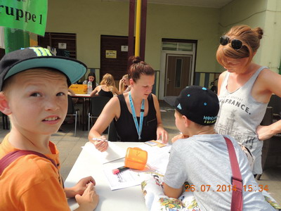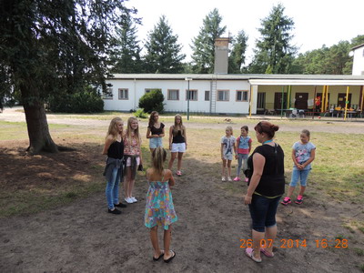 Heute war die große Anreise. Zuerst empfang uns Janin, unsere Lagerleiterin, die uns mitteilte in welchen Gruppen wir diese Woche sind. Dann sind wir zu unseren Betreuerinnen Dani und Sarah. Nachdem alle Gruppen vollständig waren lernten wir das Objekt und die Regeln kennen.