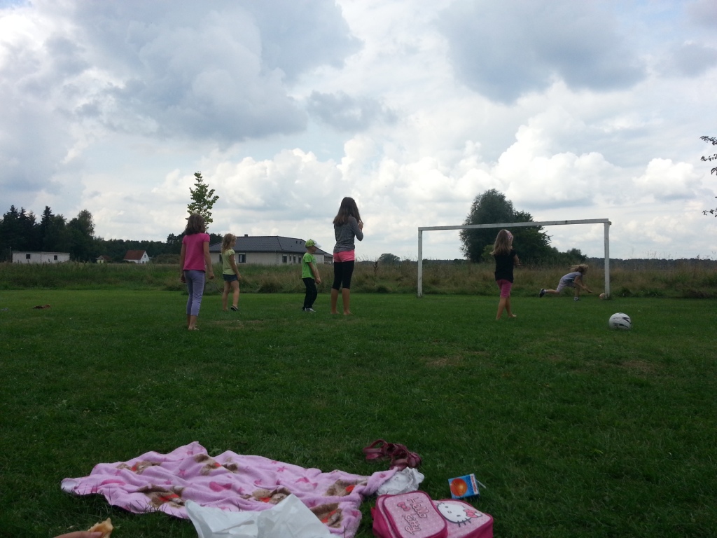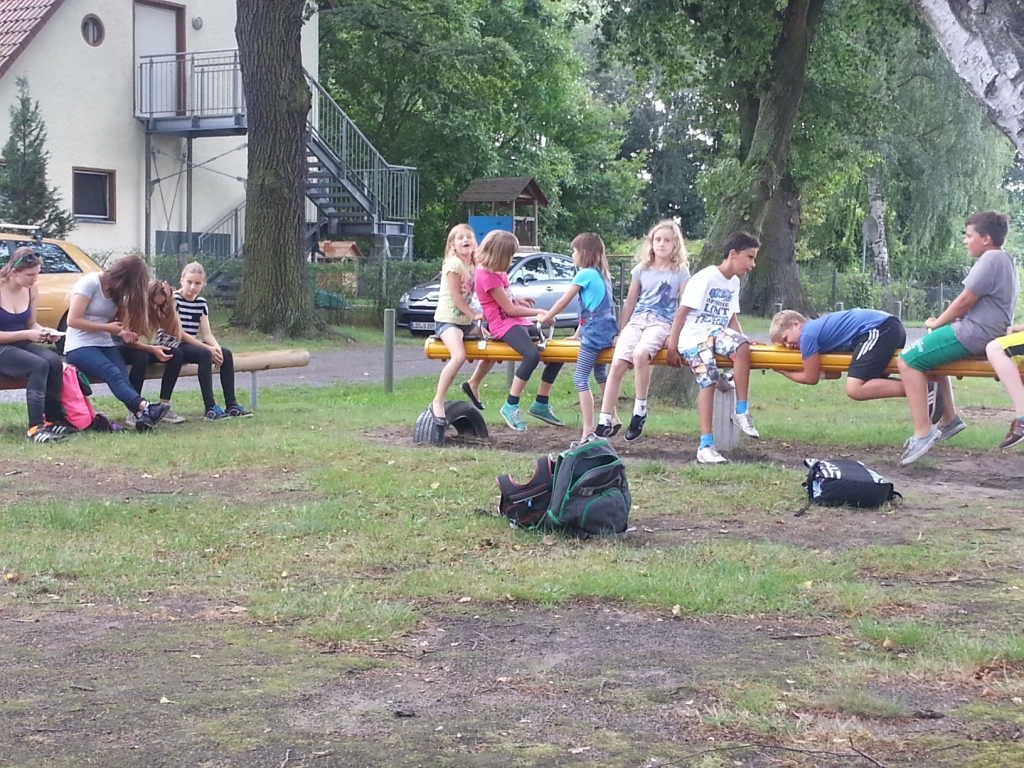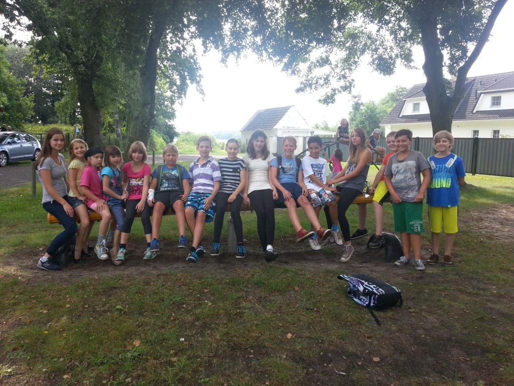 Heute Morgen nach dem Frühstück haben wir eine Fahrradtour gemacht. Als erstes sind wir mit dem Fahrrad auf ein Grundstück in Gussow gefahren. Wir sind da Trampolin gesprungen, haben Fußball gespielt und es gab noch eine Überraschung für uns...es hat sehr Spaß gemacht.