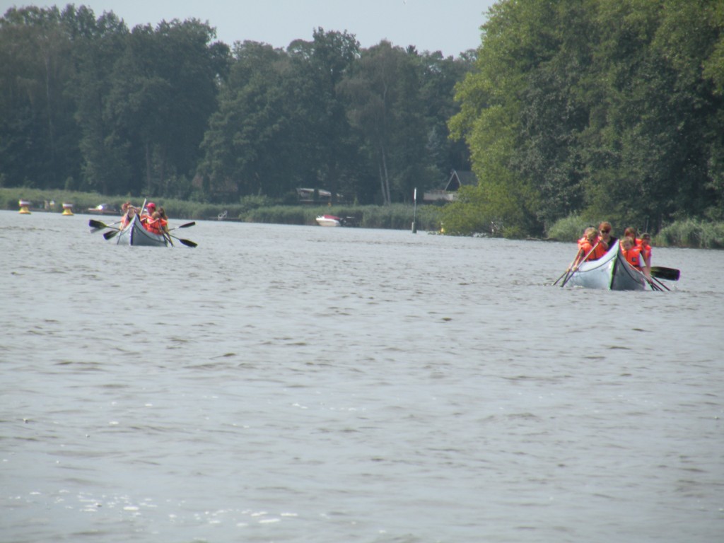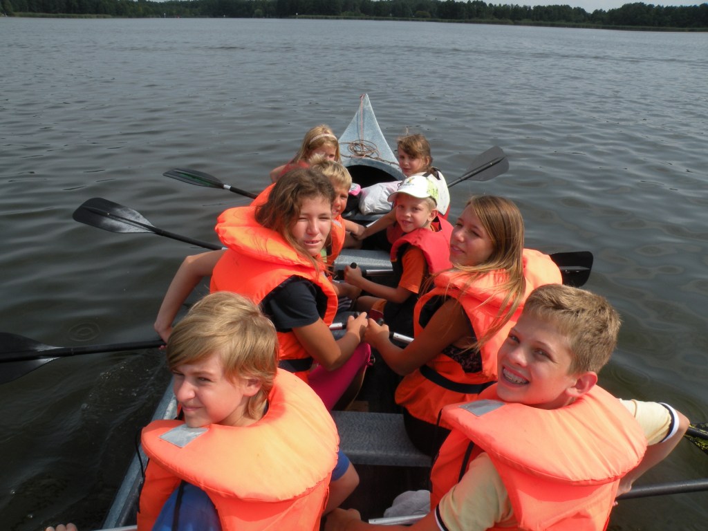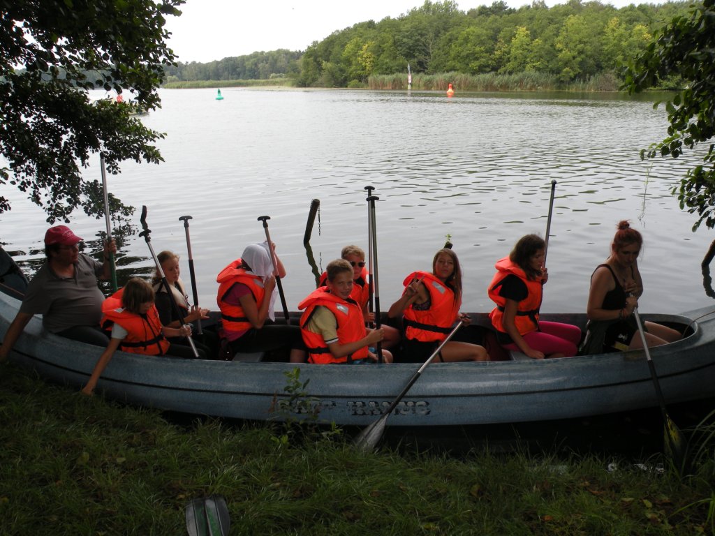 Danach sind wir Frühstücken gegangen. Kurz darauf sind alle Kinder zu den Kanus gegangen. Jeder von uns hat eine Schwimmweste und ein Paddel bekommen. Danach haben wir uns in Gruppen einteilen lassen. So sind wir dann in die Kanus gestiegen und sind losgepaddelt.