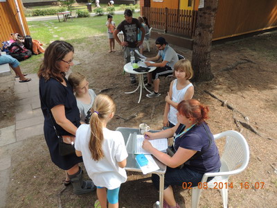 Da nicht alle gleichzeitig anreisten, nutzten alle Kinder die Zeit um Namensschilder zu basteln.