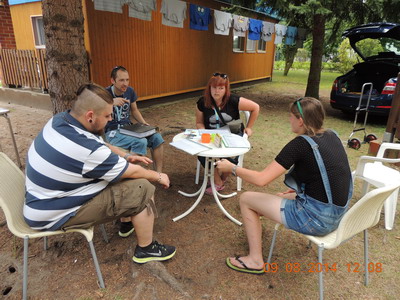 Lagerleiter Markus mit den Gruppenleitern Sarah und Max sind gut vorbereitet.