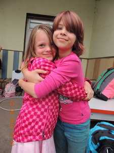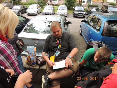 Trotzdem sich nochmals, wie gelernt, mit den Betreuern am Gruppenschild