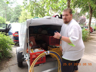 Spiele- und Materialkisten auf den Anhänger verstaut werden.