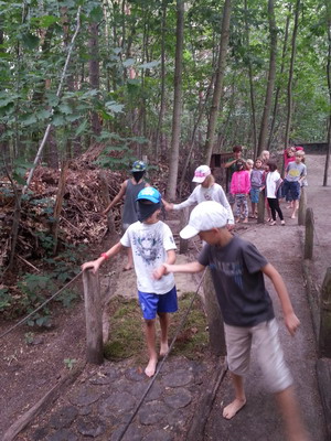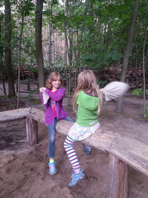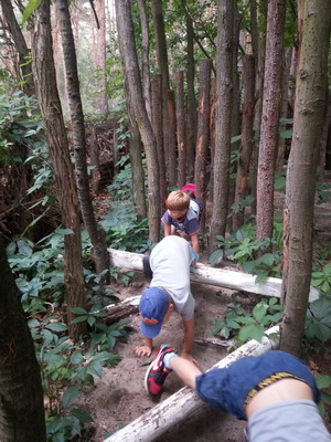Die anderen entdeckten beim Holzparcours ihre Stapelkünste