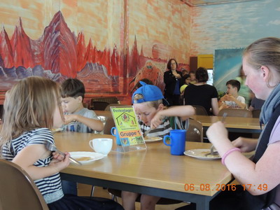 Nach einer letzten, kurzen Team-Absprache konnten dei Kinder kommen.