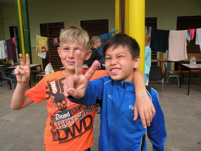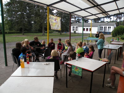 Unser heutiger Tag begann wieder mit einer netten Gesangsrunde, angestimmt von unserem Lagerleiter Rick. Danach ging es zum Frühstück, um uns für den Tag zu stärken, denn gleich danach ging es los mit dem „Gelände-Scrabble“. Bei diesem Spiel mussten die drei konkurrierenden Teams immer wieder die Gruppenhelferin Cindy auf dem Gelände des Lagers finden und Buchstaben sammeln, um so viele Wörter wie möglich mit den Teammitgliedern zu bilden. Allerdings durften sie sich nicht vom Fänger, Rick schnappen lassen. Nach dem Verzehr von leckeren Bouletten zum Mittag, sangen wir noch einmal gemeinsam bevor wir in die Mittagsruhe gingen, in der die Kinder schon Zeit fanden sich weiter auf die morgige Talentshow vorzubereiten. Dafür wurde den Kindern auch danach noch einmal Zeit gegeben in denen viele Basketballtricks, Tischtennisrekorde, und Sketch-Proben zusehen waren. Einige der starken Jungs schoben sogar mit Erfolg Ricks Auto fast mühelos über den Platz. Nach leckeren Pfannkuchen zum Abendbrot und nach einigen Ballspielen gingen die Jungs mit Betreuer Bob ein Lagerfeuer errichten, welches wir jedoch leider nicht entfachen konnten, da das Wetter uns leider einen Strich durch die Rechnung machte.