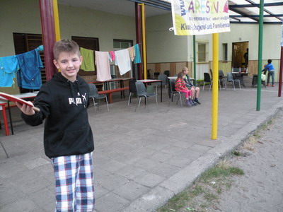 Heute Morgen nach einem ausgewogenen Frühstück begaben wir uns zum örtlichen Spielplatz von Prieros, um dann bei Edeka einzukaufen. Dies taten wir allerdings nicht nur zu Land und somit per Pedis sondern auch zu Wasser mit einem Ruderboot, in welchem jeweils vier der Kinder auf der Hin- und Rücktour mit Lagerleiter Rick mitfuhren. Am örtlichen Spielplatz angekommen durften dann zunächst die "Kleinen" einkaufen während die "Großen" einige Spiele spielten. Danach durften vier andere Kinder in den Genuss der Seeluft kommen. Als alle Einkäufe erledigt waren, haben alle Kinder und auch Betreuer das beliebte Spiel "Steh-Geh" gespielt. Zurück im Lager stärkten wir uns mit einer deftigen Portion Nudeln Bologneser Art. Nach der anschließenden Mittagsruhe wurde „Chinesische Mauer“ und hinterher einige Runden "Zombieball" mit allen gespielt. Danach traten vier Teams in zwei Spielen "Flunky-Ball" (natürlich mit Wasser gespielt) gegeneinander an. Zum Abendessen gab es unter anderem Hefeklöße und nach deren Verzehr konnten wir mit neuer Energie weitere Ballspiele spielen und zum Abschluss konnten die Kinder sich auf die baldige Talent-Show vorbereiten und einige unserer Sportler trainierten noch etwas mit Lagerleiter Rick.