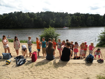 heute nach einem leckeren Frühstück, machten wir uns auf den Weg zum Haus des Waldes und lernten viele spannende Dinge über den größten Käfer Europas, den Hirschkäfer. Nach einer ausgiebigen Stärkung zum Mittag, und einer kleinen Mittagsruhe, verbrachten wir den Nachmittag am Strand, spielten Spiele und badeten im Huschtesee. Nach dem Abendbrot, probten wir für unsere Kanutour und drehten eine kleine Runde.