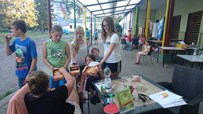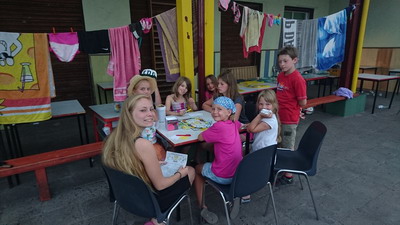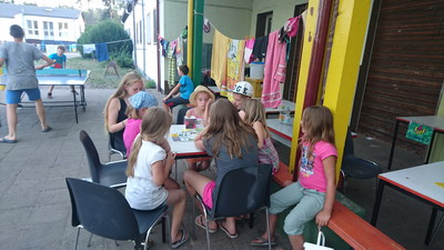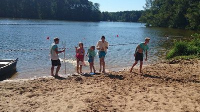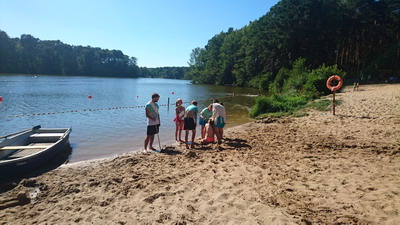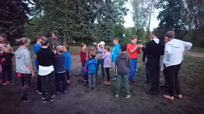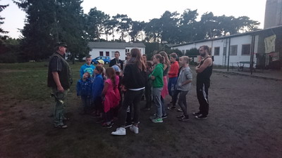 Heute Morgen konnten sich die Kinder nach dem Frühstück unabhängig davon in welcher Gruppe sie sind, aussuchen, ob sie mit Natalie tanzen, mit Sami ein Theaterstück erarbeiten oder mit Mareike selbstgemacht Knete gestalten wollten. Bei allen drei Angeboten war die Kreativität jedes Einzelnen gefragt. Nach dem Mittag bereiteten sich alle auf das Neptunfest vor. Alle waren gespannt, wen Neptun wohl in sein Meeresreich aufnehmen würde. Danach ging es dann für alle in die wohlverdiente Abkühlung. Direkt vor dem Abendbrot spielten wir noch eine Runde ‚Flunkyball’. Nach dem Abendessen hatten die Kinder etwas Freizeit, in der einige mit Sami Gesellschaftsspiele spielten und andere sich auf dem Fußballfeld betätigten. Auch den einen oder anderen Tischtennisspieler konnte man finden. Ab halb 9 abends erhielten wir Besuch von einem Jäger, der mit uns eine kleine Waldwanderung durchführte, bei der wir viel über diesen erfahren konnten. Somit endete der Tag informationsreich und alle gingen duschen, trafen sich zur Feedbackrunde und gingen dann ins Bett.