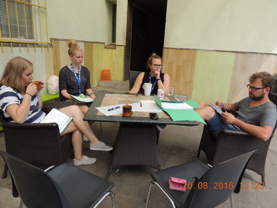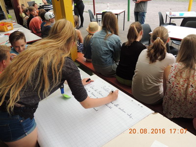 Nach dem Essen ein kurzes Treffen zum Anbringen der Regeln!