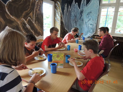Wir gehen gruppenweise zum Essen und geniessen alles, was das