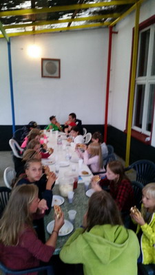 Anschließend ist eine kleine Gruppe von Kindern mit Caro
