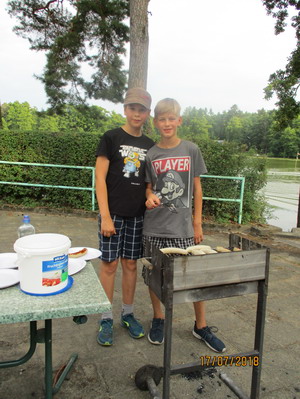 Am Abend freuten sich die zwei Jungs den Grillmeister