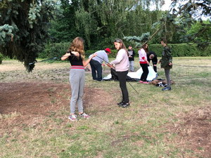 Heute früh haben wir ein verrücktes Sportfest durchgeführt.