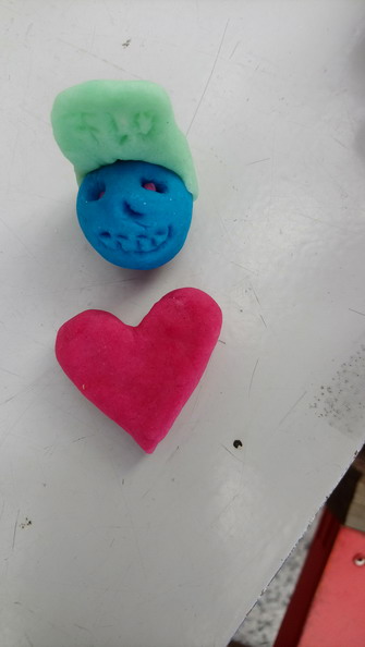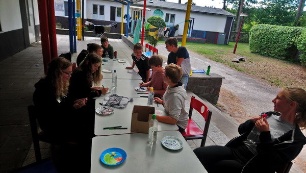 Überraschenderweise gab es heute nach dem Aufstehen ein leckeres Frühstück. Nach diesem stand unser Vormittag ganz unter dem Zeichen der Kreativität. Zuerst haben Mareike und Isi mit uns selbsthergestellte Knete gestaltet. Hier wurden einige Figuren, Herzen und sonstiges hergestellt. Im Anschluss daran bekamen die Kinder von Rick je einen Teller, der mit Keramikstiften bemalt werden konnte.