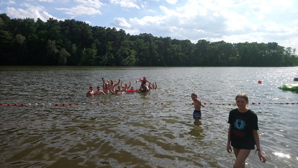 Nach einer kleinen Mittagsruhe, die nach der gestrigen Nachtwanderung bitter nötig war, gingen wir zur Wiese und spielten einige Spiele. Nachdem wir dann schön aufgeheizt waren, sprangen fast alle ein letztes Mal in den See. Zum Abendbrot gab es dann Burger, die unser Ferienlager dann ausklingen lassen haben.