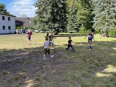Am Nachmittag konnten sich alle etwas mehr bewegen und spielten mit ihren BetreuerInnen wieder ein paar Spiele. Außerdem gab es schon ein wenig Zeit, für die Show am Mittwoch zu üben.