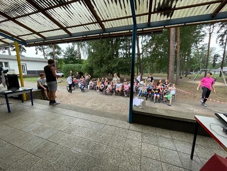 Heute bekamen die Kinder am Vormittag noch einmal die Gelegenheit, für die Show am Abend zu üben. Wer fertig war hat mit den Betreuern ein paar Spiele gespielt. Zum Mittagessen gab es dann Spinat mit Kartoffeln und Rührei, damit wir dann gestärkt waren für den Weg zum Haus des Waldes. Dort haben wir das ein oder andere über die Tiere im Wald gelernt und konnten das gelernte auch teilweise praktisch erfahren. Am Abend fand dann unsere Show statt. Hier konnten wir Wetten und Showeinlagen bestaunen. Am Ende wurde sogar ein wenig getanzt, was auf den Bildern auch zu sehen ist.