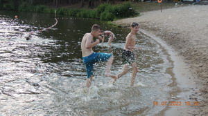 Da sich einige Kinder unbedingt abkühlen, trafen wir uns am Strand und im Wasser.