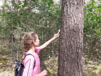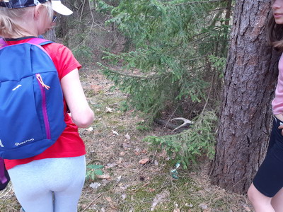 Dabei suchen wir Spuren von Tieren und Menschen im Wald.