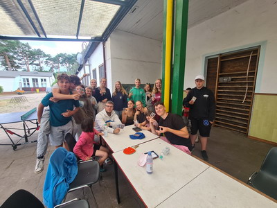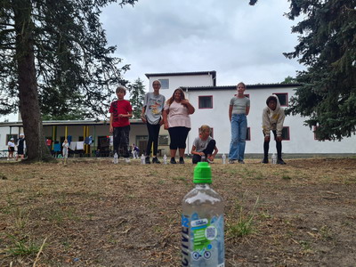 Danach füllte Gruppe 2 ihre Wasserreserven beim Flunkeyball spielen auf.