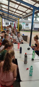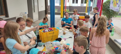 Nachmittags haben dann alle gebastelt. Indianerschmuck, Traumfänger,