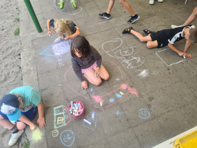 Zombieball auf der Wiese – oder Malen auf der Terrasse.