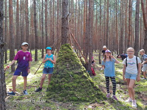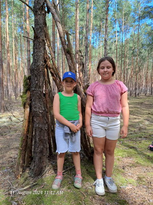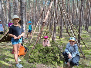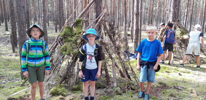 Die mittleren Gruppen von Ansgar und Mike versuchten sich im "Hütte-Bauen" im Wald.