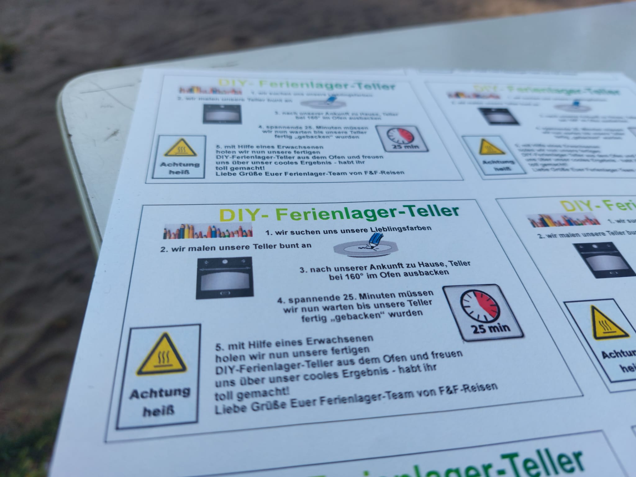 Hier noch die Anleitung, um die selbstgestalteten Teller zu Hause abschließend zu bearbeiten.