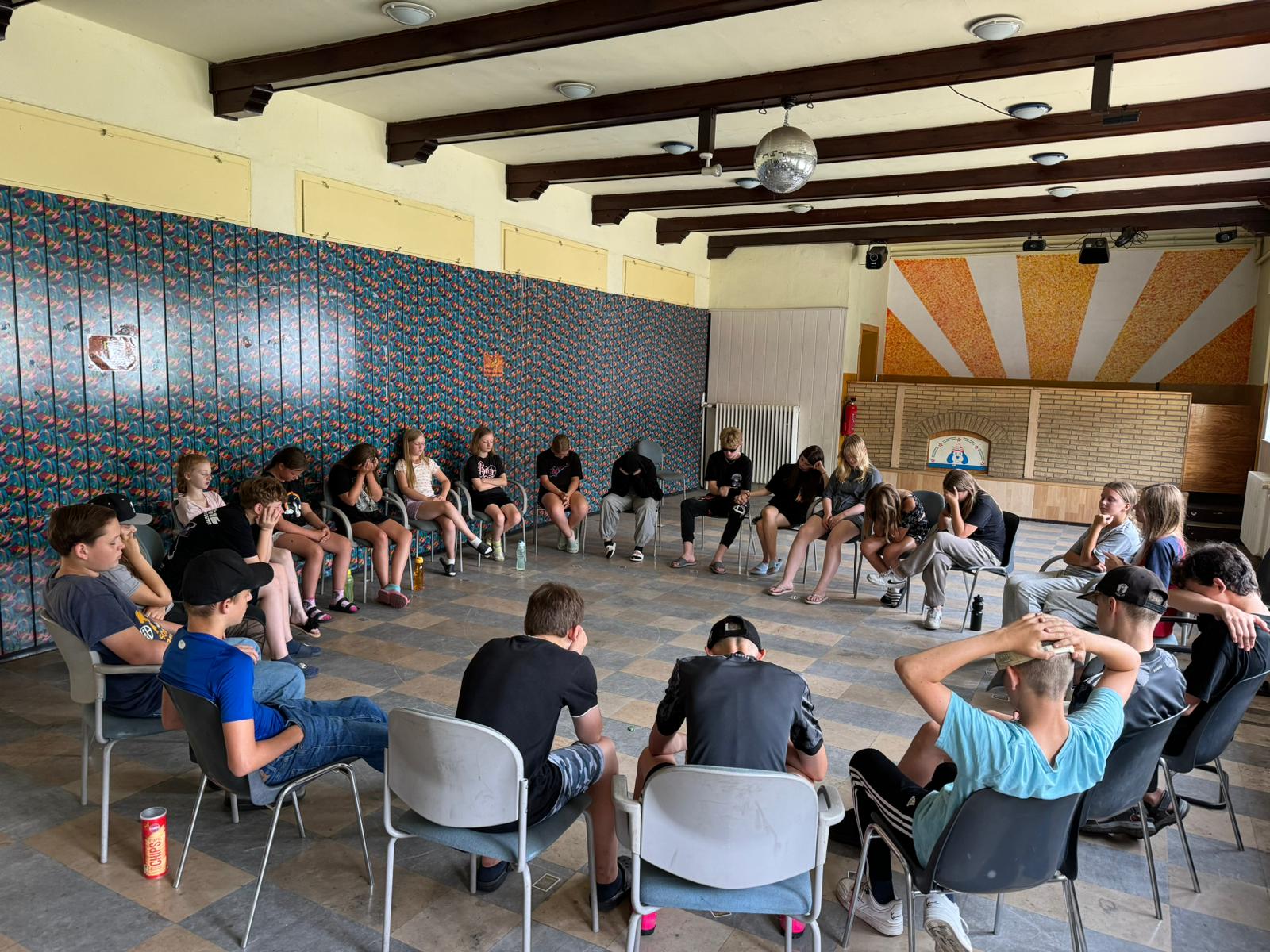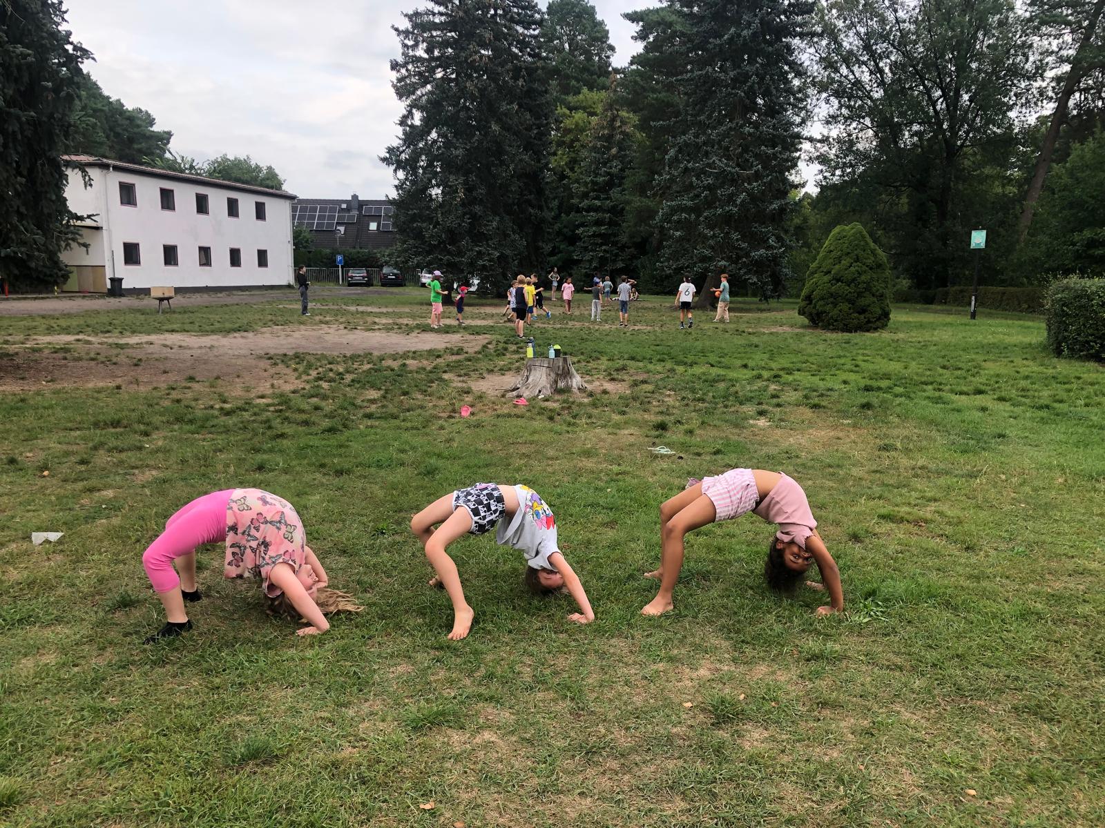 Nach unserer ersten Nacht im Ferienlager gab es das erste Frühstück mit dem ersten Start in den Tag. Alle Kinder spielten in ihren jeweiligen Gruppen Kennenlernspiele. Das schöne Wetter wurde an dem Tag auch prompt genutzt, um in den See zu springen. Am Nachmittag und am Abend haben die Kinder sehr viel Zombieball gespielt und schon die ersten Übungseinheiten für unsere Show eingelegt.